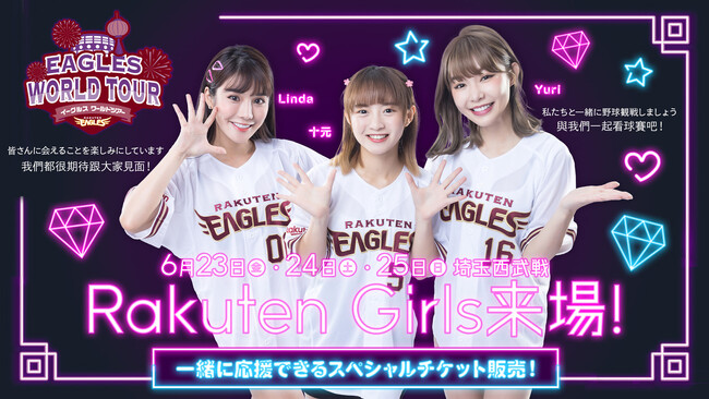 Rakuten Girlsと一緒に応援する「女神seat」や、直筆サイン入りチェキのお渡しとハイタッチができるイベントなどでイーグルスワールドツアーを盛り上げてくれます!