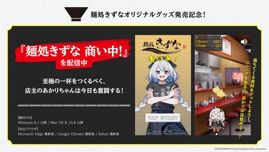 本企画のためだけに作られたオリジナルゲーム『麺処きずな 商い中!』を配信します。至極の一杯を作るべく、店主「紲星あかり」が奮闘するかわいらしい姿が見られますのでこの機会にぜひプレイしてみてください。