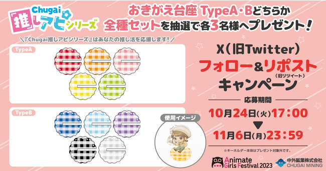 商品の発売を記念して、中外鉱業 X(@chugaionline)をフォロー&該当のポストをRPいただいた方の中から抽選で『Chugai推しアピシリーズ』商品を3名様へプレゼント!