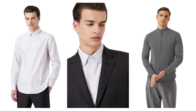 今回追加されたのは、カーディガンのような着心地に加え、エンポリオ アルマーニらしいモダンでリラックスしたシルエットのカジュアルなモデルと、スリムフィットですっきりとした着丈に、ナローラペルが特徴のコンテンポラリーなモデルのスーツ2型とシャツ。シャツは、レギュラー、ワイドカラーに加え、ジップアップ仕様の3つのスタイルからお選びいただけます。スーツには新作生地が追加され、パーソナルオーダーの選択肢がさらに広がります。