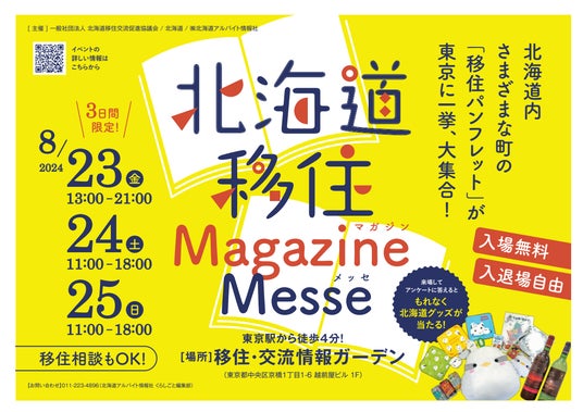 この度、一般社団法人北海道移住交流促進協議会、株式会社北海道アルバイト情報社との共催により、「北海道移住Magazine Messe」を開催します。