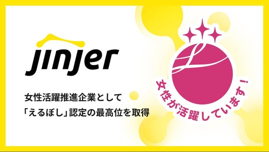 統合型人事システム「ジンジャー」を提供をしているjinjer株式会社(本社:東京都新宿区、代表取締役社長CEO:冨永 健)は、女性活躍推進に関する取り組みが優良な企業として、厚生労働大臣より「えるぼし」認定の最高位である「3つ星」を取得したことをお知らせします。