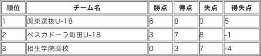 ペスカドーラ町田U-18 3-5 関東選抜U-18