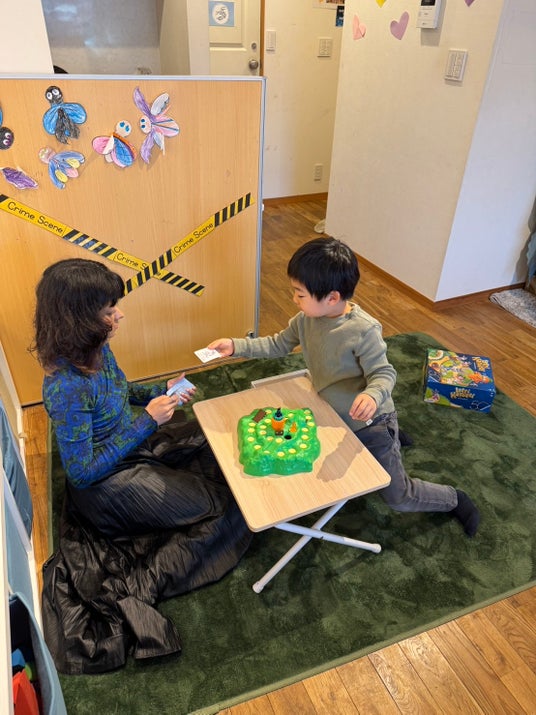 朝10時に登校する子どもたちは、全国の教室やメタバースと繋がり、「ホーム体育」で身体を動かし、自由進度学習やランチタイム、オンライン授業、全国の友達との部活動・サークルなどを楽しむことができます。リアル教室目黒区洗足校では、バイリンガルやネイティブの英語教師と一緒に過ごすことで自然に楽しく英語を学びながら学習を行なうことが可能です。日本語が話せるスタッフもサポートするので英会話のご経験がないお子様でも問題ございません。海外のボードゲームや英語のアクティビティを楽しむことができます。