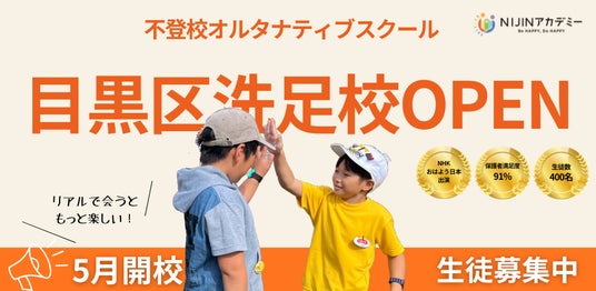 株式会社NIJIN(本社:東京都江東区、代表取締役:星野達郎)が運営する不登校オルタナティブスクール『NIJINアカデミー』はこの度、リアル教室“東京都目黒区洗足校”を開校することをお知らせいたします。