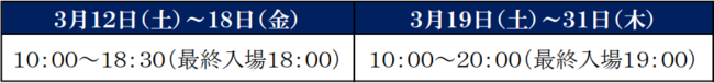 対象日:【3月】12日(土)・13日(日)・19日(土)・20日(日)・21日(月・祝)・26日