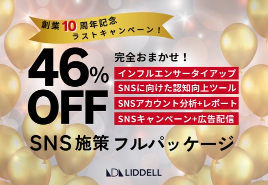 人を基軸としたマーケティング事業を展開するLIDDELL株式会社(本社:東京都港区、代表取締役:福田 晃一、以下リデル)は、リデル10周年を記念して行う最後のキャンペーンとして、《完全おまかせ SNS施策フルパッケージ》を提供いたします。このパッケージでは、SNSプロモーションに必要な施策を網羅。事前準備から企画提案、運営までをワンストップでサポートし、企業のSNS戦略を強力にバックアップします。
