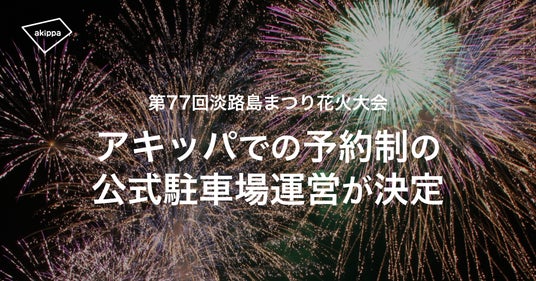 駐車場予約アプリ「アキッパ(akippa)」(以下、アキッパ)を運営するakippa株式会社(代表取締役社長 CEO:金谷元気)は、2024年8月4日(日)に兵庫県・淡路島の大浜公園内で開催される「第77回淡路島まつり花火大会」にて完全予約制の公式駐車場を運営することが決定しました。