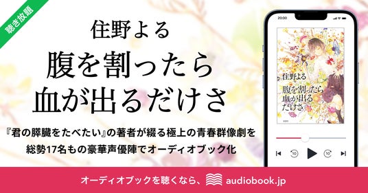 オーディオブック書籍ラインナップ数No.1(※1)の「audiobook.jp」を運営する株式会社オトバンク(本社:東京都文京区、代表取締役社長:久保田裕也、以下「オトバンク」)は、『腹を割ったら血が出るだけさ』(住野よる著/双葉社刊)のオーディオブックを、2024年9月13日(金)より「audiobook.jp」(聴き放題プラン含む)で配信開始いたします。