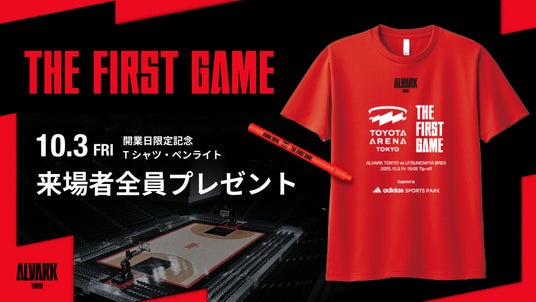 2025年10月3日(金)TOYOTA ARENA TOKYOで開催する、りそなグループB.LEAGUE 2025-26 B1リーグ戦 第1節 宇都宮ブレックス戦GAME1では、「開業日限定記念Tシャツ・ペンライト」を来場者全員にプレゼントいたします。