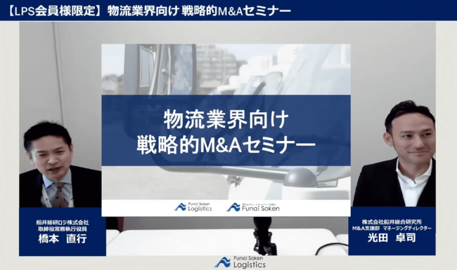 「今後M&Aを通して、事業拡大を図っていきたい」「M&Aの売り案件の紹介を数多く得たい」といった考えをもつロジスティクスプロバイダー経営研究会(https://www.f-logi.com/butsuryu/society/lps/)の会員様に向けて、物流業界に特化した戦略的M&Aの手法をお伝えしました。