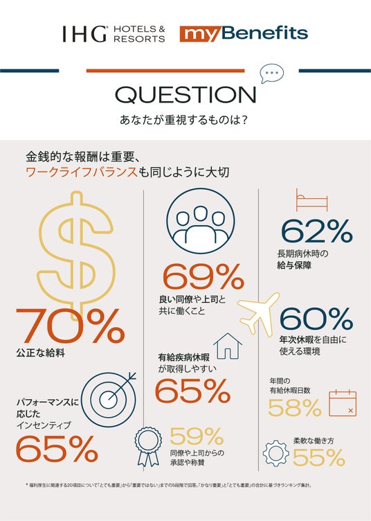 IHGホテルズ&リゾーツ(本社:英国、日本:東京都港区、国内運営会社:IHG・ANA・ホテルズグループジャパン合同会社、代表:IHGホテルズ&リゾーツ 日本&マイクロネシア マネージングディレクター 兼 IHG・ANA・ホテルズグループジャパン合同会社 CEO アビジェイ・サンディリア、以下IHG)は、スタッフ向け制度や福利厚生を改善し、次世代の優秀な人財をIHGホテルに惹きつけることを目的とした戦略的な取り組みである「myBenefits(マイベネフィット)」プログラムを日本に導入すると発表しました。