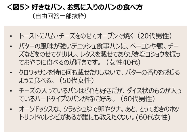 お気に入りのパンの食べ方は、単にのせる・焼くだけではなく、のせる・かける・焼くを組み合わせて食していた。<図5>