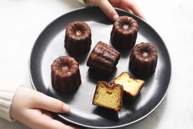 表面はカリッと、中は驚くほどしっとり。バニラ感と、”濡れ”食感をお楽しみいただけるカヌレです。さらに隠し味のマスカルポーネチーズがコクと濃厚さをプラスしています。カヌレの魅力でもある、2種類の食感とラム酒の香り、じっくりと高温で焼き上げることによる香ばしさをぜひご堪能ください。