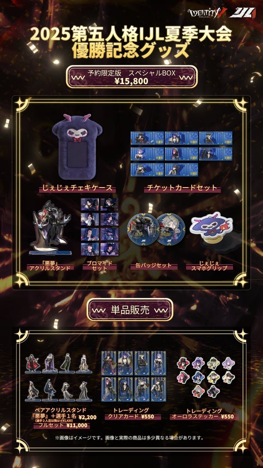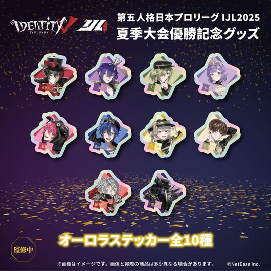 本商品は、『Identity V』を運営するNetEase Gamesの正式なライセンス許諾のもと制作された、優勝記念の公式グッズです。夏季IJL(Identity V Japan League)優勝という記念すべき瞬間を形にするため、優勝メンバー8名と『Identity V』のキャラクターが共演する完全新規描き下ろしビジュアルを採用しました。ゲームファン・eスポーツファンの双方が楽しめる、ここでしか手に入らない特別なデザインとなっております。
