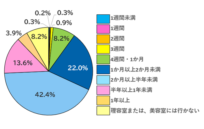 ヘアサロンに行く方の約7割が半年までに1度、約9割が1年経過するまでに1度は行っているという結果になりました。