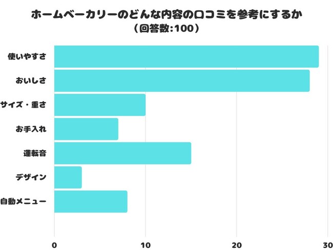 ホームベーカリーのどんな内容の口コミを参考にするかをアンケートにて調査したところ、1位は「使いやすさ」でした。