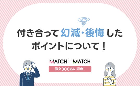 企業と顧客をつなぐDXクラウドサービスを展開する株式会社ショーケース(東京都港区、代表取締役社長:平野井順一、証券コード:3909、以下ショーケース)が運営する、マッチングアプリをわかりやすくガイドするWebメディア「MATCH×MATCH」は、「恋人と付き合ってから幻滅・後悔したポイントは何?【男女300名】」の調査結果をまとめました。