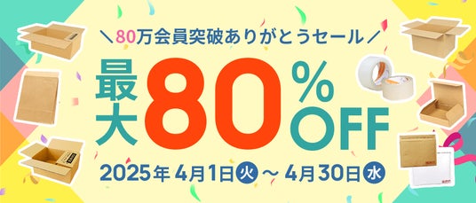 この80万会員突破に感謝の気持ちを込めて、4月1日よりダンボールワンでは「80万会員突破ありがとうセール」を実施いたします。お得なアイテムが多数ございますので、ぜひこの機会にご利用ください。