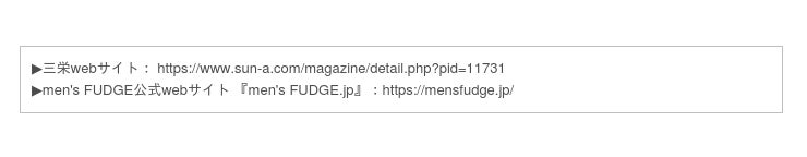 men's FUDGE公式webサイト 『men's FUDGE.jp』:https://mensfudge.jp/