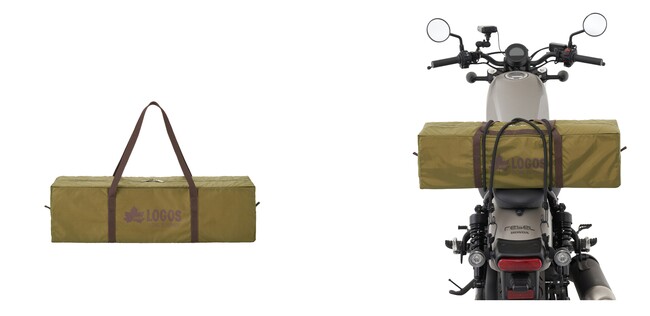 付属の収納バッグは、収納時の幅が約60cmとバイクに積みやすいサイズ感。