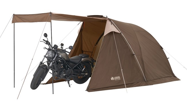 テント前面部分を張り出すような設計で、バイクや自転車の駐輪スペースとしても使える。