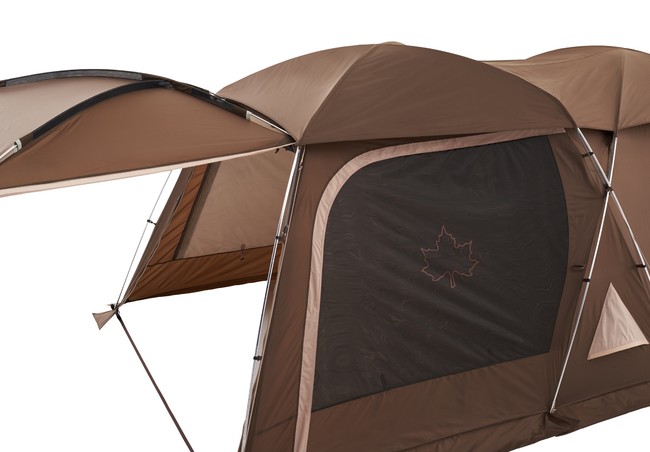 仕様 : パネルキャノピー、ランタンフック デビルブロックメッシュドア、ベンチレーション、フルマッドスカート、メッシュポケット、窓付フレキシドア、サイドウィンドウ、吊下げT/Cインナーテント、C型インナードア、電源コード取込口、回転式ジッパー