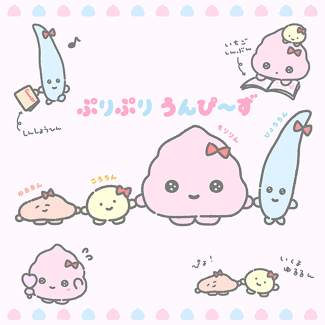 「みんな、きょうもかわいいね」わたしたち、ぷりぷりかわいい『うんぴの精』の4うんぴ組、うんぴ~ず☆あこがれのキティちゃんみたいになりたくて、みんな、サンリオに入るのが夢なんだ♪おそろいのリボンをつけて、今日もかわいいね!