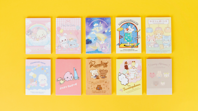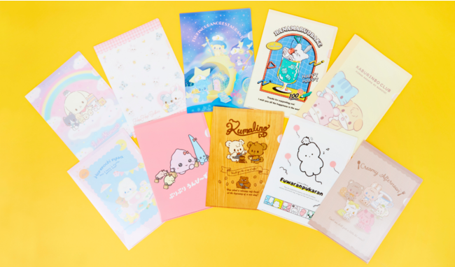 キャラクター:「Kumalino(クマリーノ)」、「はなまるおばけ」、「かぶりんぼくらぶ」、「Creamy Afternoon(クリーミィアフタヌーン)」、「はれのちにゅあ」、「Fuwaranpukaran(ふわらんぷからん)」、「Lulu Kurun(ルルクルン)」、「ぷりぷりうんぴ~ず」、「月の裏のレストラン」、「HopHop Babies(ホップホップベイビーズ)」 ※3アイテム共通