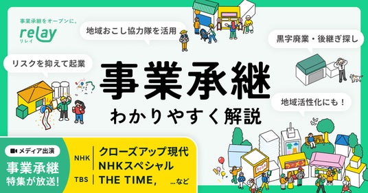 relayはこれまで社名や企業情報が伏せられてきた事業承継のマッチングをオープンネーム(実名開示)で行い、「オープンな事業承継」という新しい視点での事業承継支援を提案し、これまで取り残されていた地域の小規模事業者の廃業問題に真正面から向き合います。