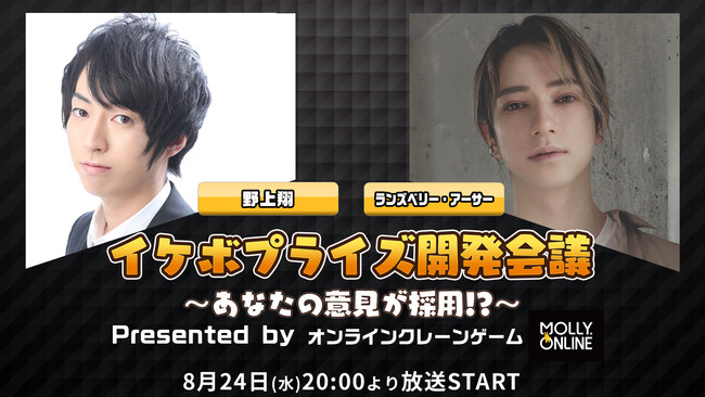 8月24日(水)20時よりニコニコ生放送にて野上翔さんとランズベリー・アーサーさんと一緒にプライズ開発する生放送を実施します。