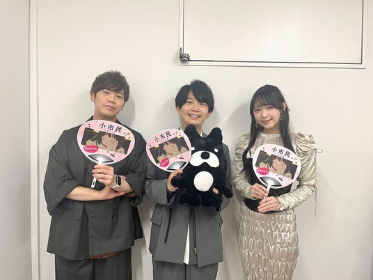 また『小市民シリーズ』の上映会では、梅田修一朗さん(小鳩常悟朗役)、羊宮妃那さん(小佐内ゆき役)、古川慎さん(堂島健吾役)が登壇。第1期の名シーンをまとめた振り返りオーディオコメンタリーが行われ、アフレコ裏話満載のトークを繰り広げました。