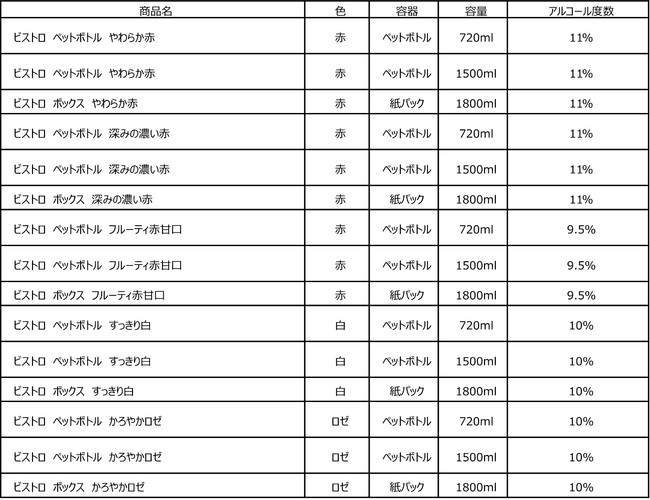 ※「フルーティ赤甘口」・「かろやかロゼ」は中味変更なし