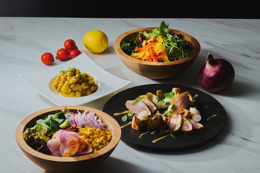 10種類の具材やコンディメントから選んで作るサラダのほか、「合鴨と根菜のサラダ 無花果のドレッシング」や「茸のマリネ」など、秋の味覚を使用したメニューもご用意しています。