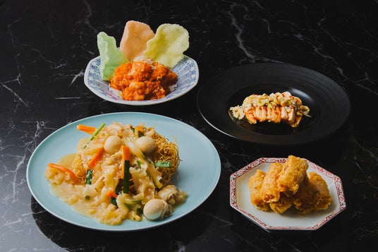 具だくさんの餡をかける「かた焼きそば」や、パリッとした「網春巻き」、しっとりジューシーな「よだれ鶏」のほか、ディナー限定で「海老のチリソース」をご提供します。