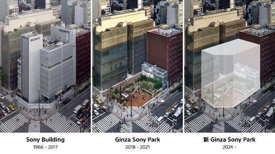 現在は建て替え工事を進めており、本年2024年に新・Ginza Sony Parkが完成する予定です。