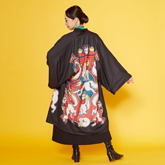 日本のノスタルジックな風景や縁起物をモチーフにした彼女の作品が、「倭物やカヤ」の和洋服やがま口などのアイテムとして登場します。「ネオレトロポップ」な世界観と伝統文化が織りなす、賑やかで華やかな新しい風景をお楽しみいただけます。