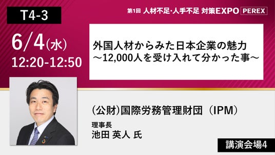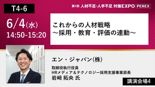 人材不足・人手不足 対策EXPO 実行委員会(実行委員長堀正人、運営(株)イノベント)は、2025年6月4日(水)から6月6日(金)まで東京ビッグサイト 東1~3ホールにて人材不足にお悩みを持つ経営者・人事担当者向け「第1回 人材不足・人手不足 対策EXPO[PEREX]」を開催いたします。会場内では人材不足を解決に導く、採用・教育・外国人材活用・離職防止・VR・AI活用・スポットワークなど今知りたい経営者・経営・人事担当向けの講演を多数開催。