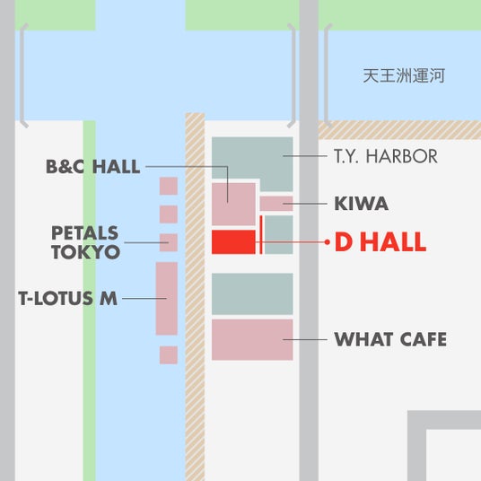 隣接する展示・イベントスペース「B&C HALL」と連結して利用することで、最大約1,540平方メートル の一体的な空間構成が可能です。さらに船上イベントスペース「T-LOTUS M」や水上アートホテル「PETALS TOKYO」など、周辺施設と組み合わせて利用できます。複数会場を横断することで、用途やシーンに応じて空間を使い分けられ、イベントの規模や演出に幅が生まれます。