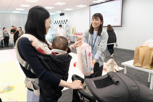 イベント終了後には、ご参加いただいた皆さまへお土産をご用意。ピープル様(なめられ太郎)、ロッテ様(オリジナルコアラのマーチ)、牛乳石鹸様(カウブランド ベビーシリーズ)、花王様(メリーズファーストプレミアム1パック)にご提供いただきました。