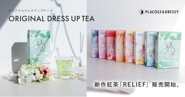 2022年鎌倉由比ヶ浜にオープンしたカフェ"-お花とドレスと紅茶のお店- DRESSY ROOM&Tea" 店頭と専用ECサイト『DRESSYONLINE』にて販売しているオリジナルブレンドティーと農薬不使用のエディブルフラワー(食用花)のセットに新作紅茶『RELIEF』が仲間入り!