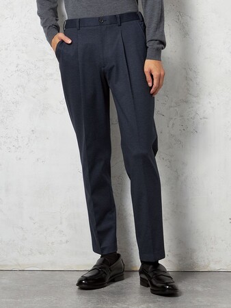 4. パンツウエスト脇ゴムシャーリング、ワンタックテーパードラインで“ラクなのにすっきり見え”