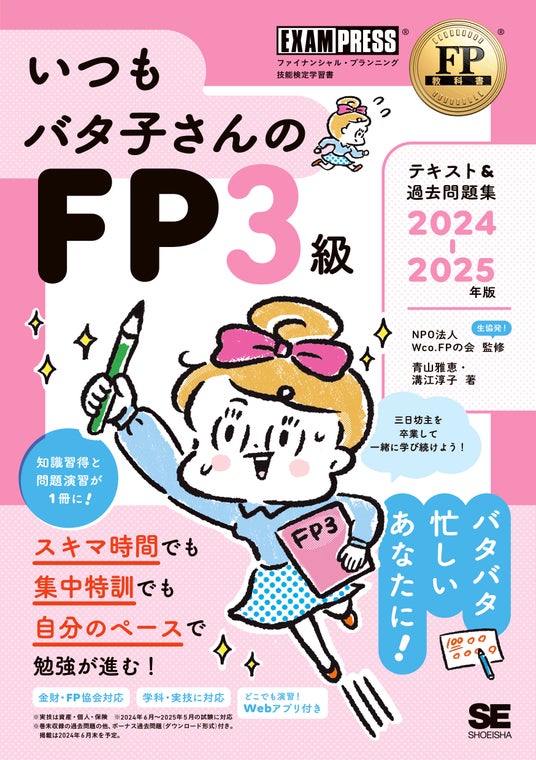 株式会社翔泳社(本社:東京都新宿区舟町5、社長:佐々木幹夫)は、書籍『FP教科書 いつもバタ子さんのFP3級 テキスト&過去問題集 2024-2025年版』、『FP教科書 いつもバタ子さんのFP2級・AFP テキスト&過去問題集 2024-2025年版』を2024年5月28日に発売します。