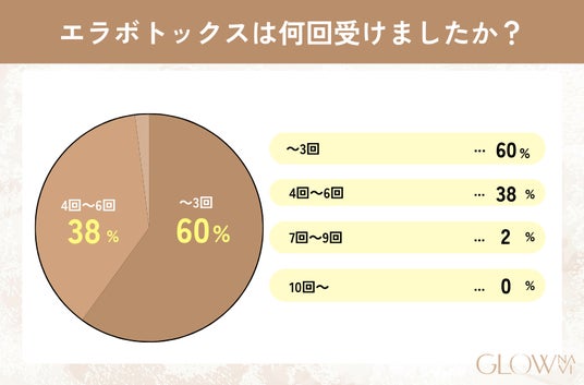 一方、7回以上施術を受けた人は2%にとどまっており、多くの人が6回以下の回数でエラボトックスの施術を完了していることが分かります。
