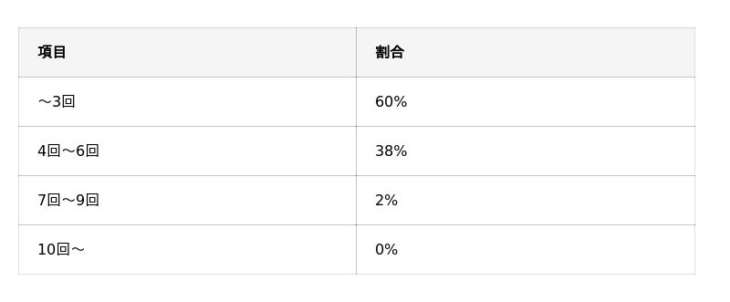 施術回数に関して、「~3回」と回答した人が最も多く、全体の6割を占めました。