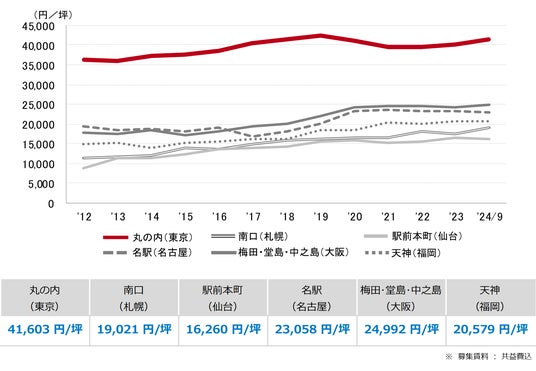 三幸エステート株式会社(本社:東京都中央区、取締役社長:武井重夫)は、2024年9月度の東京都心5区(千代田区、中央区、港区、新宿区、渋谷区)および全国6大都市(東京、札幌、仙台、名古屋、大阪、福岡)の大規模ビル※1のマーケットデータをまとめた「オフィスマーケット2024年10月号」を公表します。