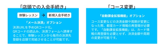 併せて、「自動課金拡張機能」や「メール決済」といったオプションを組み合わせることで、スクールに入会される生徒様へ柔軟かつスムーズに決済先のご登録をご案内できるほか、毎月の引き落とし業務にかかる作業を自動化され、経理担当者の業務工数や管理コストの大幅な削減が期待されています。