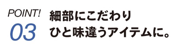 ベーシックであることを基本に、程よくアクセントを加えることで幅広い世代、スタイルにフィットするアイテムに仕上げました。
