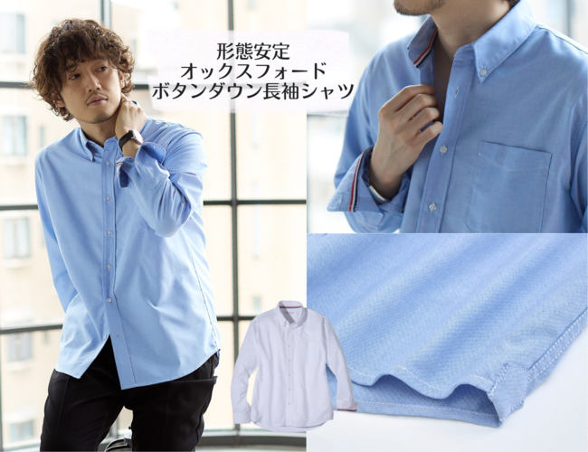 商品名:【MBコラボ】形態安定オックスフォードボタンダウン長袖シャツ【3L以上お腹ゆったり】(消臭テープ付)