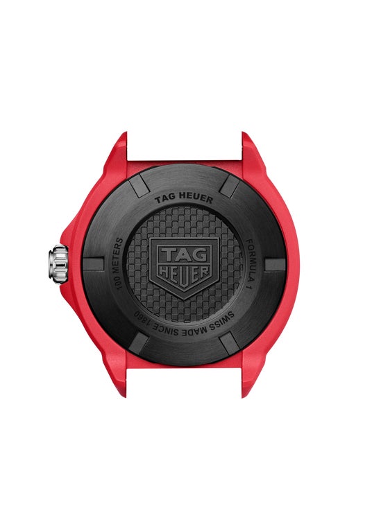 ムーブメントに加えて、今回新たに導入されたのが、タグ・ホイヤーが開発した“THポリライト”。軽量で耐久性に優れ、無限のカラーバリエーションを実現し、人間工学とデザイン性の両面を最適化することが可能な新素材は、タグ・ホイヤーのイノベーションへのひたむきな取り組みにおける新たなマイルストーンを記すものとなっています。「タグ・ホイヤー フォーミュラ1」のファンに長年親しまれてきたアイコニックな菊の花を思わせるような双方向回転ベゼルにも改良が施され、THポリライトが採用されることで、回転させると上質な機械音が響き、時計の知覚体験を向上させる洗練された要素も加えています。